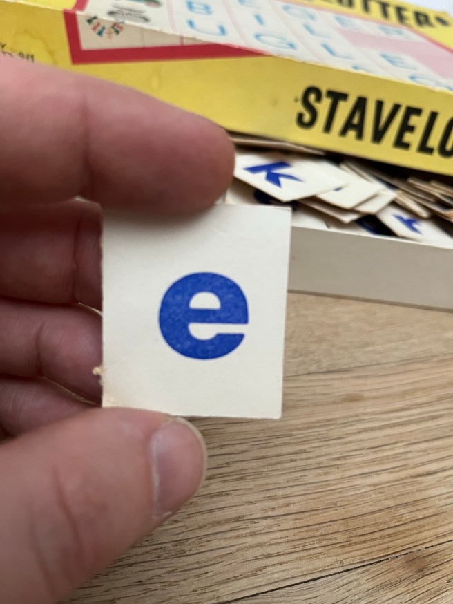 En lille ændring var der dog sket: Spillebrikkerne med bogstaver havde fået ny skrifttype. 60’er-spillets bogstavtyper med “serif” (små fødder på bogstaverne) var skiftet ud med “sans serif”-typer (uden fødder) i 70’er-udgaven. Skrifttypen i det gamle spil er formentlig Rockingham Demi Bold, og i det nye er det muligvis Limerick Serial Bold. De nye bogstaver signalerede noget mere moderne, og var måske også lettere at læse, for de børn som skulle lære at stave. Men lidt af spillets gammeldags hygge forsvandt med de nye skrifttyper.