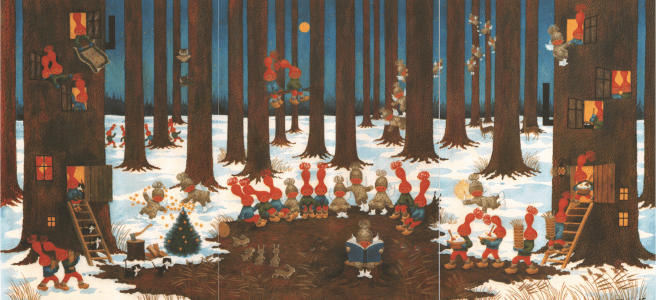 Nu er vi kommet godt i gang med december, og også hos nisserne i træet ved Karen K.’s hus er det atter blevet vinter. Her kommer sidste afsnit af Året rundt med nisserne, med udgangspunkt i Karen Kjærsgaards egen fortælling om nisserne, som blev bragt ved siden af de store julepanoramaer i Familiejournalen i 1980 og 1983. Du kan læse de første indlæg i serien ved at klikke på dette link.