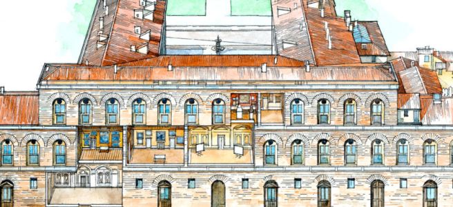 Måske er det arkitekturen og landskabet omkring søsterens gård, der har inspireret Karen Kjærsgaard til den julekrybbe hun tegnede til Familiejournalen i 1999. Stemning er i hvert fald lidt sydeuropæisk i tegningerne.
