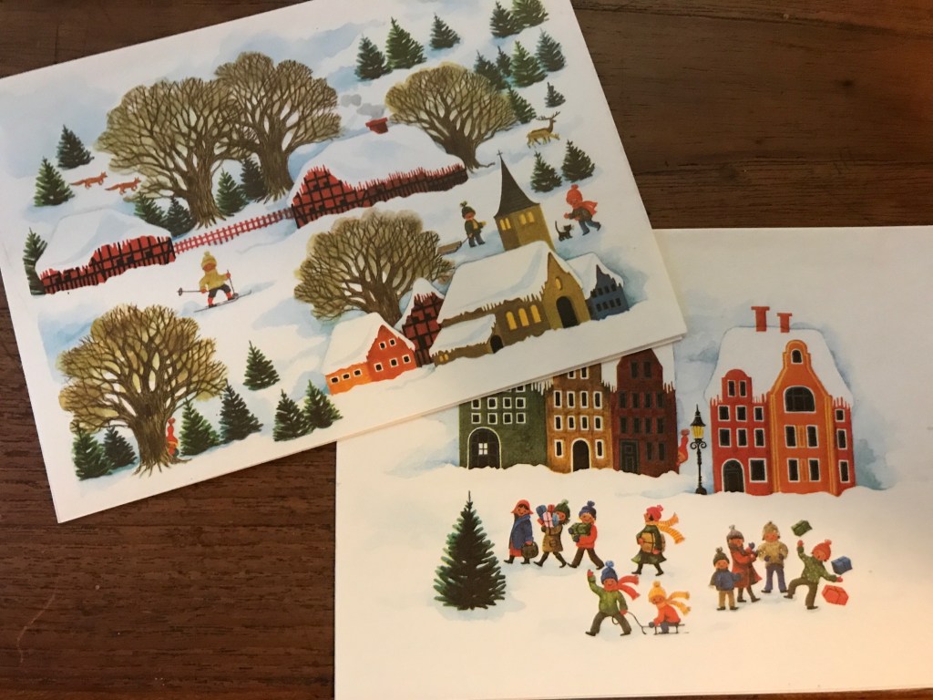 Her vil jeg vise de nye julebonader, som jeg i år har købt fra Stefan og Sivs gamle lager og enkelte andre steder. De er næsten alle trykt af kunstforlaget Axel Elisasson, som også udgav postkort og julekort og andre papirvarer. Alle bonader har et serienummer, og jeg gætter på, at man måske kan aflæse produktionsåret heraf. I så fald stammer de fra 1970 og 1971.
