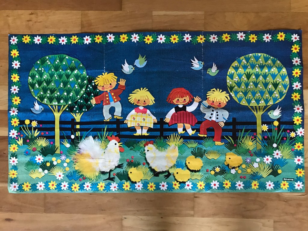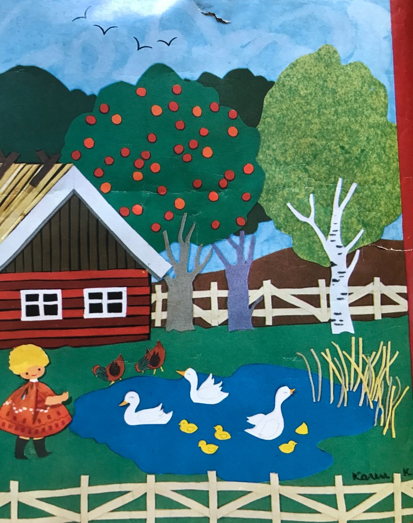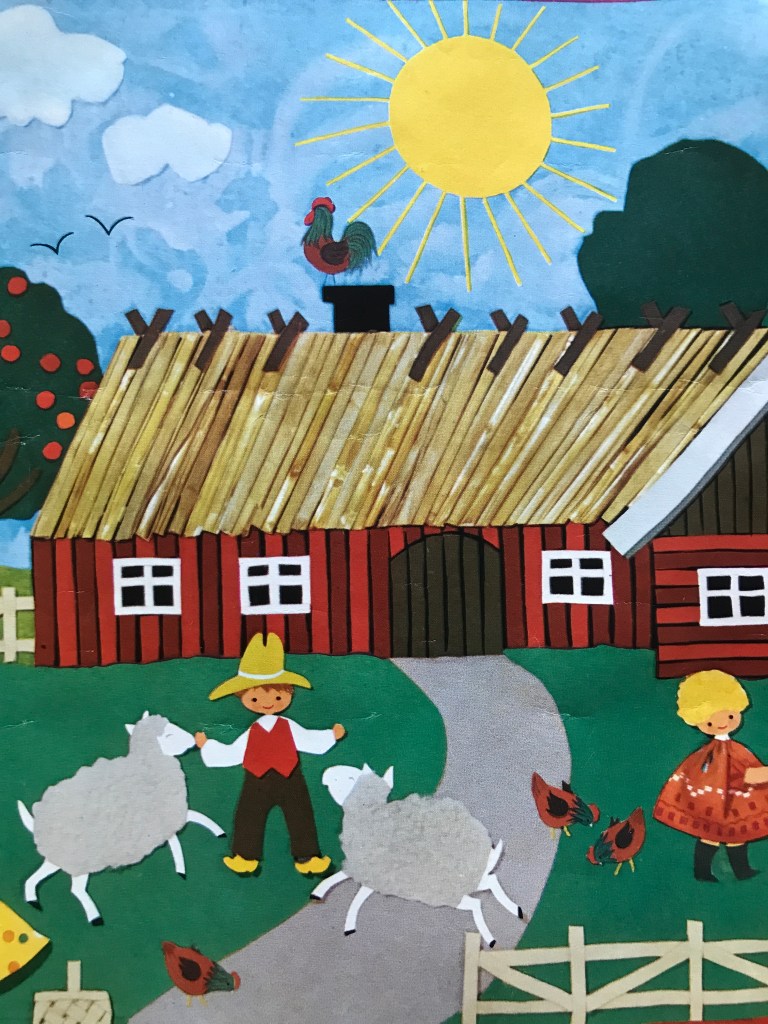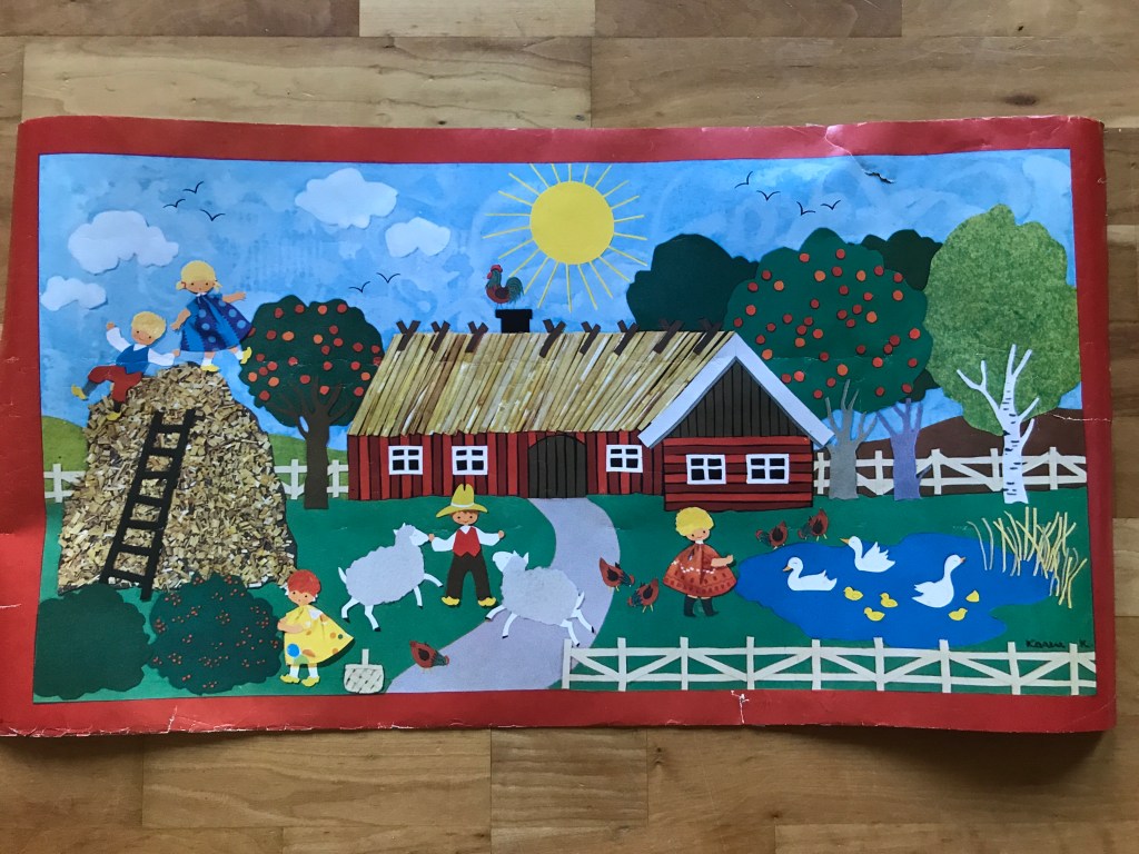 Men her skal I se et par sommermotiver fra landet. Børn og dyr midt i alt det grønne. Alle tre motiver er såkaldte “bonader”, som har været til salg i Sverige. Herhjemme ville vi nok kalde dem plakater.