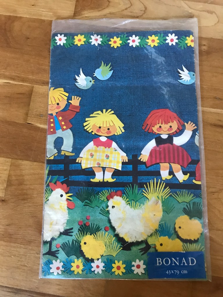 Plakaten er stadig i sin oprindelige indpakning, og man kan se, at den er solgt som en bonad. Prisen mangler, men har i starten af 1970’erne har den formentlig kostet omkring 1,5 svenske kroner.