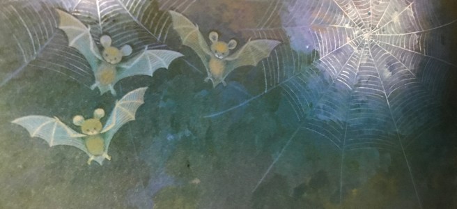 Og i de mørke rum under træet, hvor de tre store hunde lurer, kan man skimte mængder af flagermus og spindelvæv i de dunkle kroge.