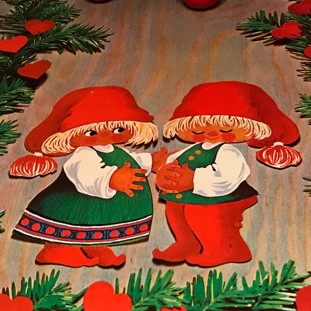 Svaret er stadig: Ja, det tror jeg bestemt, men nu har jeg lidt mere belæg for påstanden, end blot at de ligner andre nisser af Karen K. Jeg har nemlig fundet det grafiske forlæg for nisserne. Kort efter jul sidste år fandt jeg denne svenske julebordløber af papir.