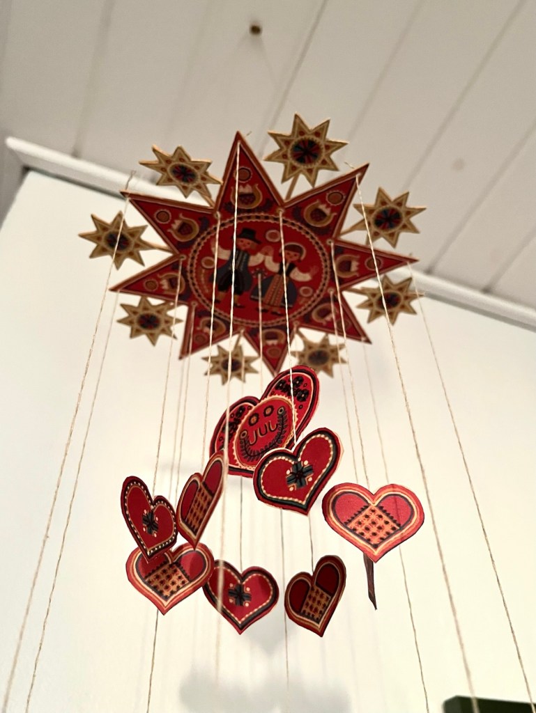 Julen 2025 synger på sit allersidste vers. Mange steder er julepynten nok allerede pillet ned, men her hos mig hænger de mange fine ting stadig roligt rundt omkring. Blandt andet denne gamle uro af Karen K., som snart kan fejre sin 60 års fødselsdag.