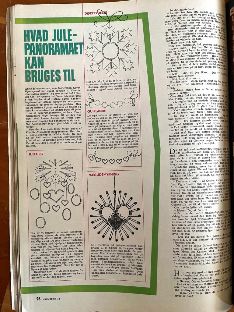 Den sidste historie i bogen har særlig interesse for mig i nutiden og for bloggen her. Den viser nemlig, at jeg har haft fat i et Familiejournalen fra 1982 og var faldet for Karen K.’s julepynt.