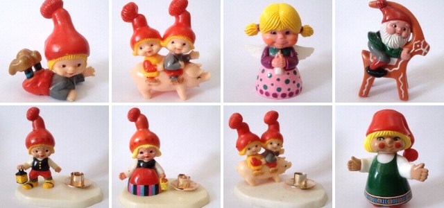 Dallevalle-nisser af ukendt ophav. Kunne bestilles i varehusets julekatalog i 1980.