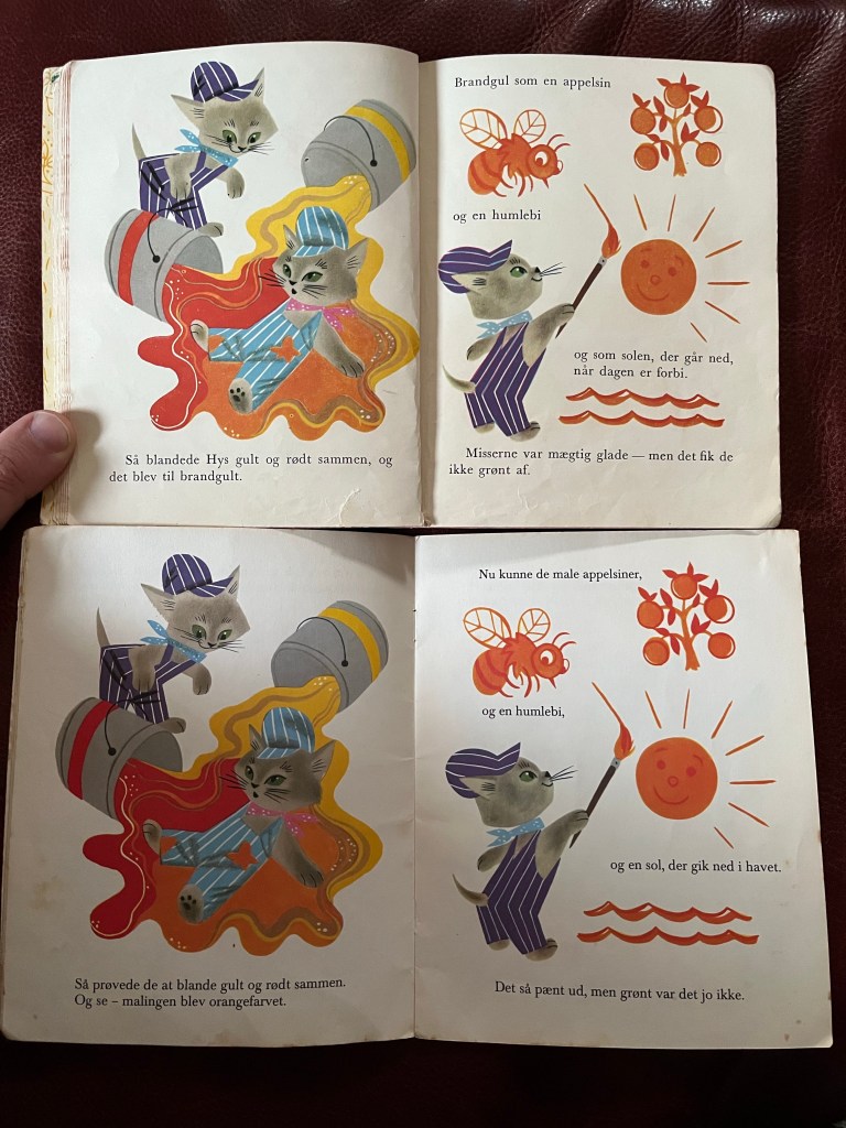 Den opmærksomme læser ser, at tegningen har en anden baggrundsfarve end det trykte papir – det var helt almindeligt, at det samme motiv blev brugt på mange forskellige baggrundsfarver, så køberne kunne vælge den farve, der nu engang tiltalte dem bedst.